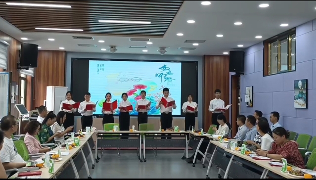 “一声老师,一世师恩”,座谈会上,学院本科生代表们为老师献上了精彩的朗诵节目,声情并茂地表达着对老师的尊敬与感激之情。