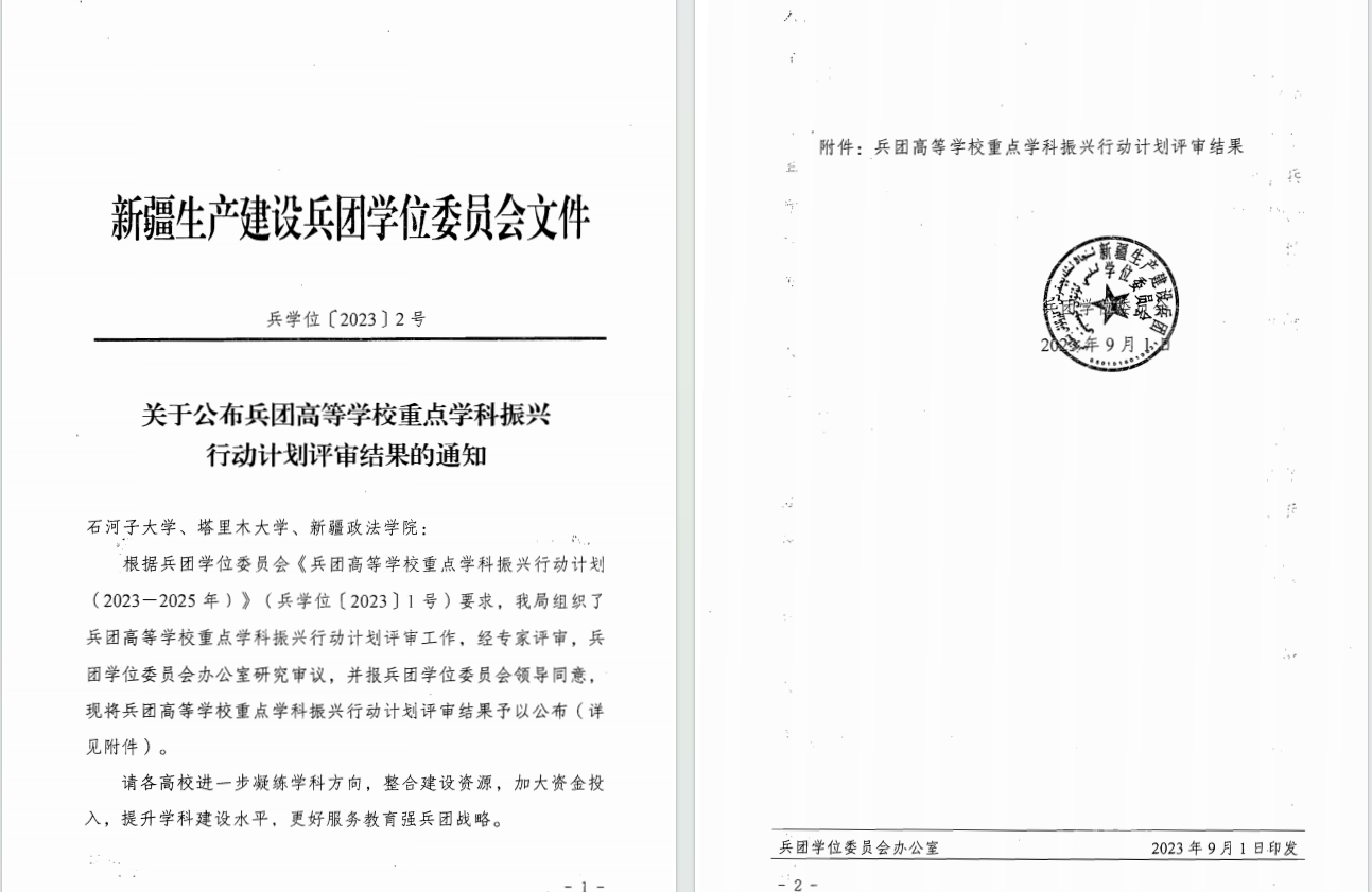 获得本次兵团学科建设支持,为我院学科建设发展打下了良好的发展基础。