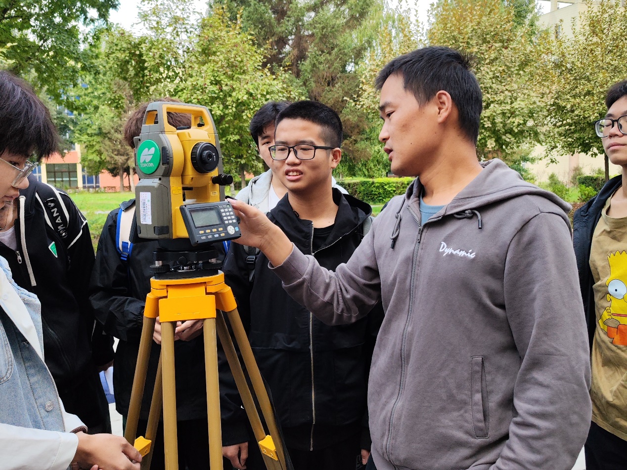 在实践开始前,马玉清老师首先强调了借还仪器的要求、仪器的保养以及实践操作过程的人、物安全等事项;接下来马玉清老师讲述了这此次课程实习所涉及到的理论知识,以及测量的工作任务及测量时的一些相关注意事项,并为同学们仔细讲解全站仪的使用方法以及注意事项,仪表盘上的按钮及各个功能,并进行了演示操作,马玉清老师和大家强调了,同学们也纷纷进行尝试。