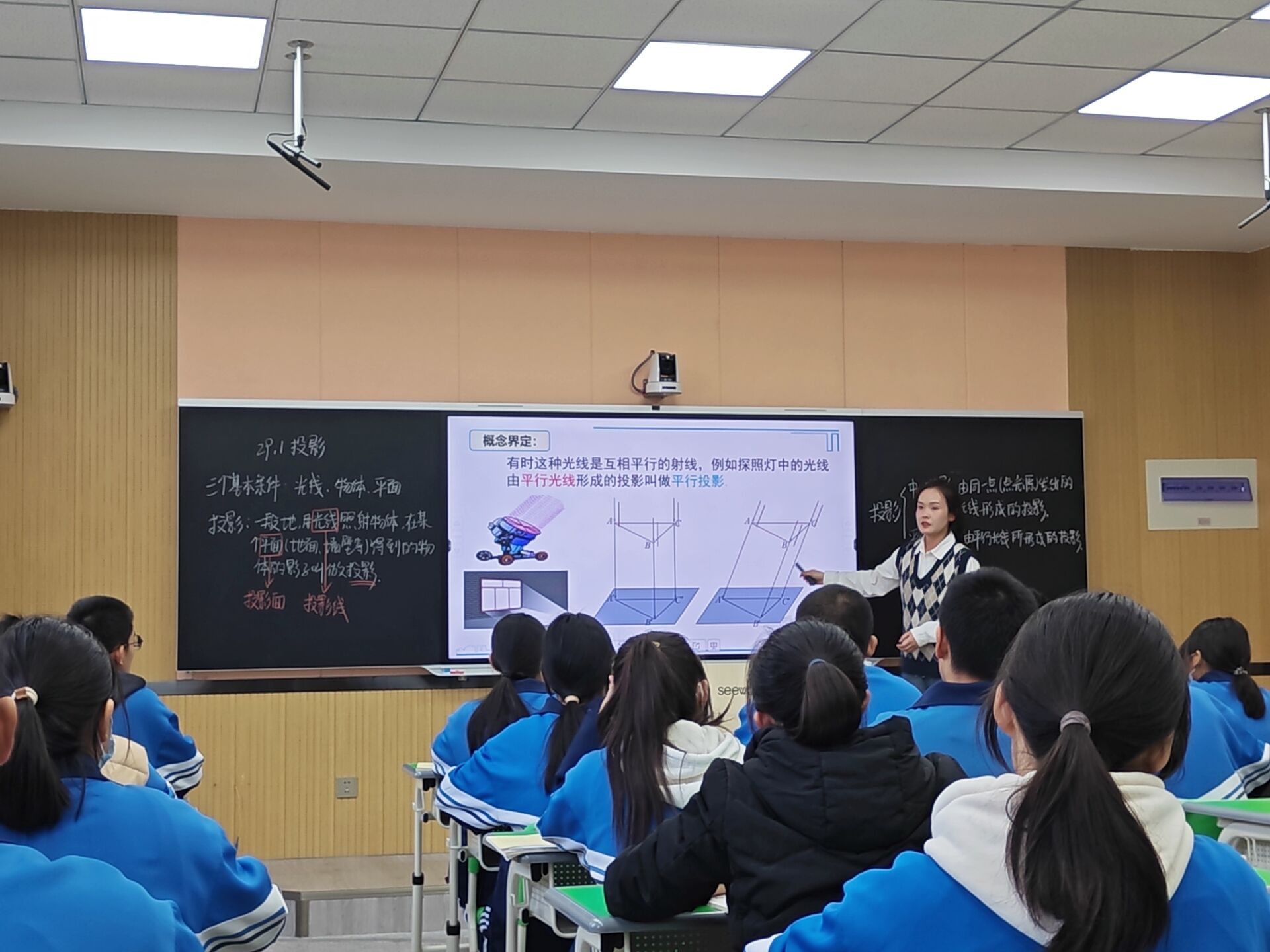 研讨会上实践教学双方学校导师和研究生共同听取了实习生李巧丹、崔雁娇的现场讲课《正弦函数》、《投影》,并指导了实习教研活动,第二十二中学的高晖宗书记、祝永华副校长及数学教研组全体教师参加了上述活动。